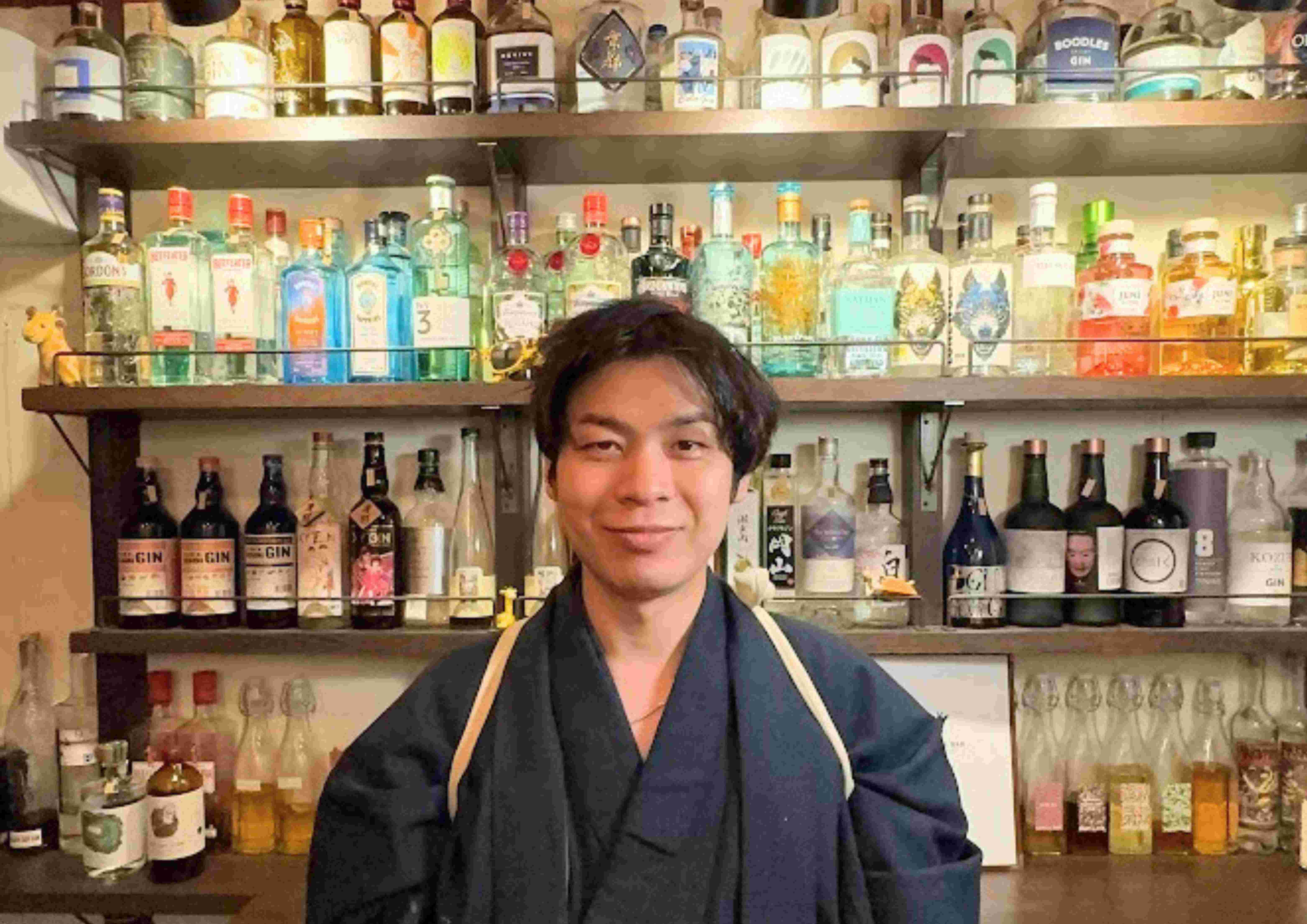 ジンと燻製のバーを営む店主 柿木。